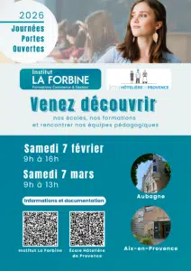L’École Hôtelière de Provence vous ouvre ses portes à l’occasion de ses Journées Portes Ouvertes le samedi 7 février, de 9h à 16h, puis le samedi 7 mars, de 9h à 13h.